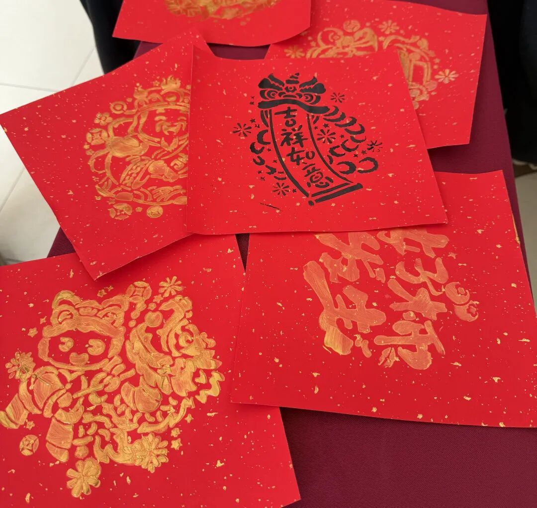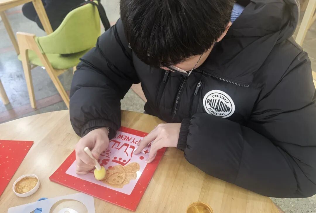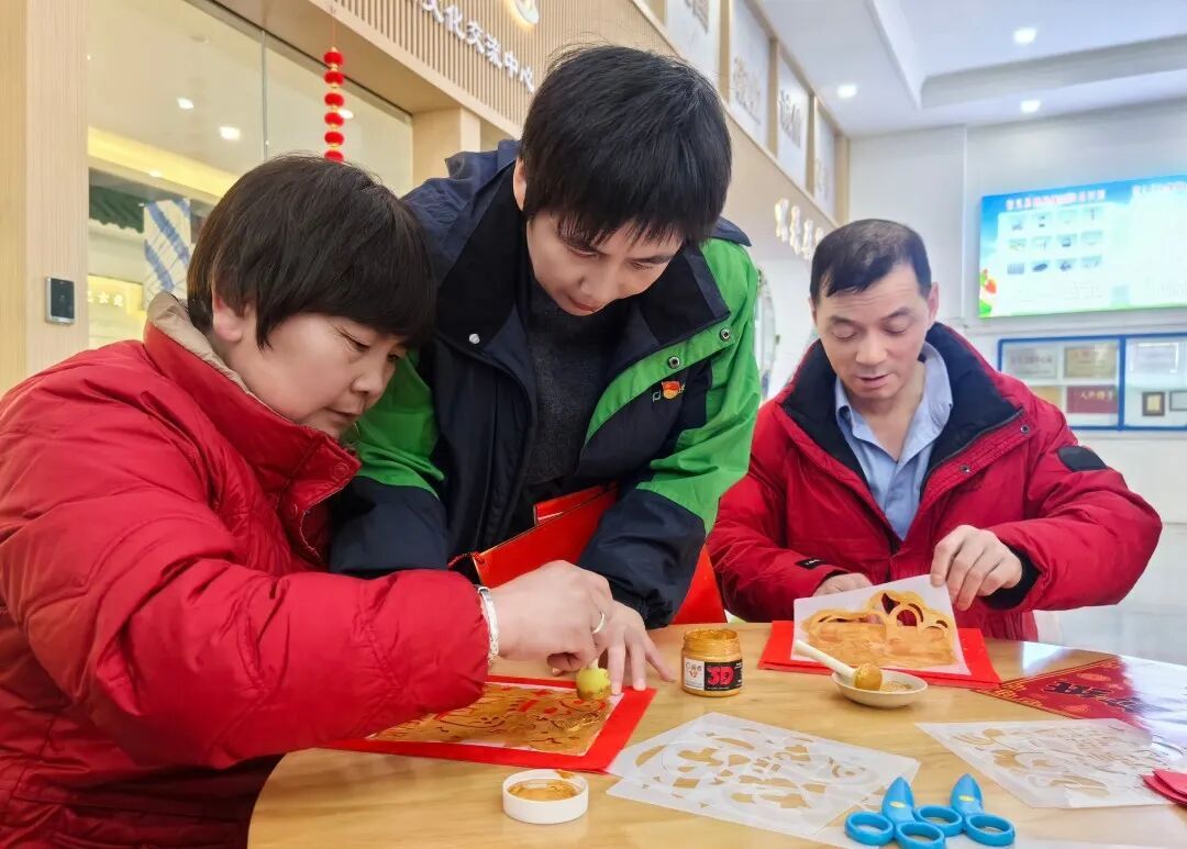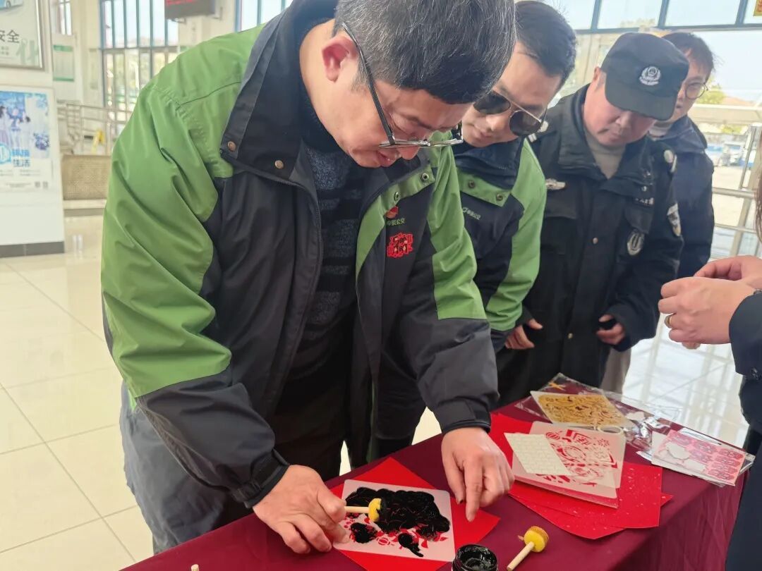 等车间隙,亲手印一张福。调墨、铺纸、按压……归途未启,年味已浓。