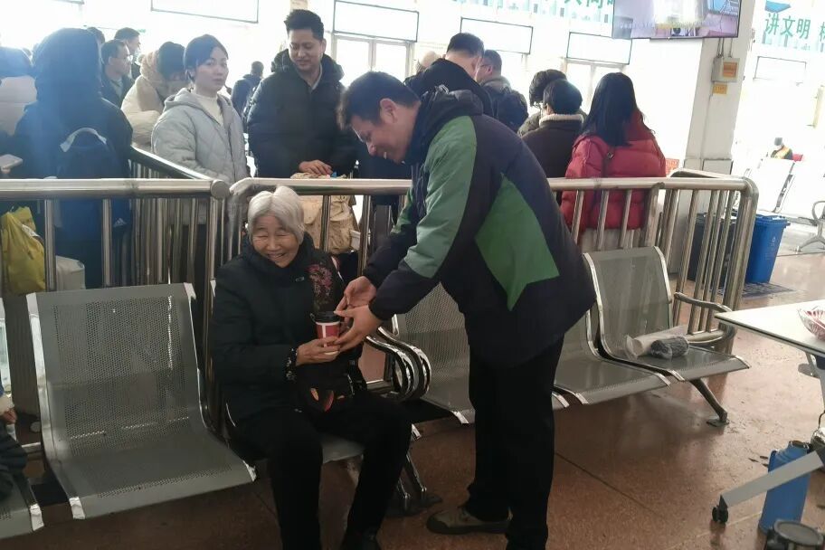 乘客接过姜枣茶,高兴地说道:“出门这么久,好久没人递热茶给我了。”热气氤氲里,他低头喝了一口,笑了……