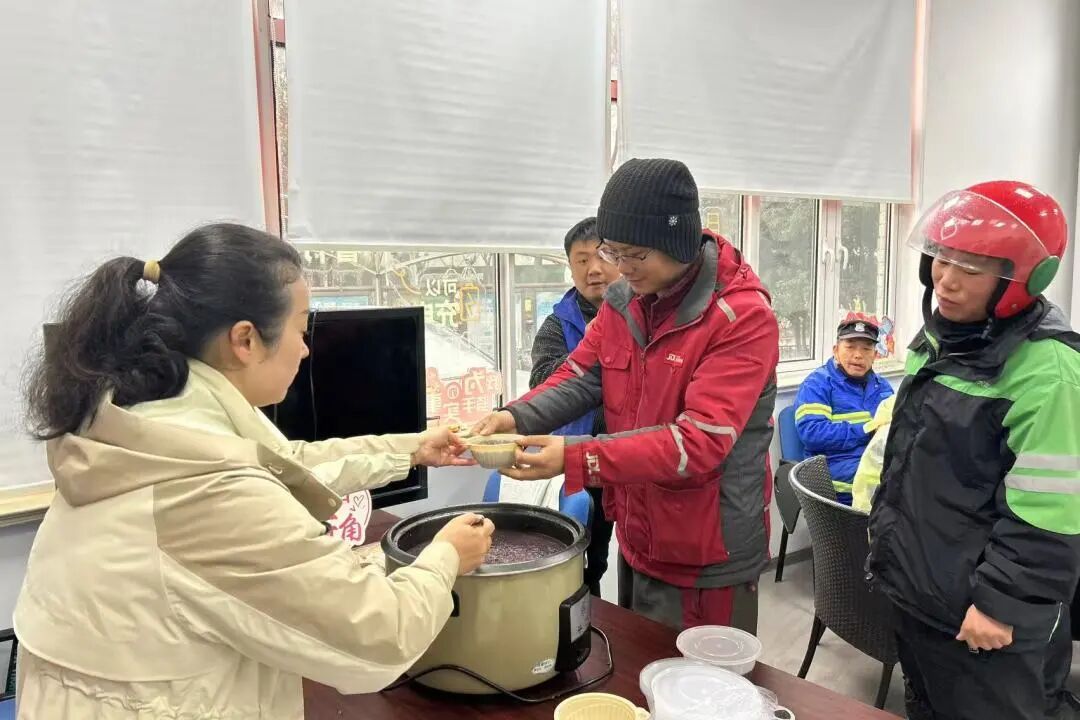腊八节及春节前夕,街道各基层党支部、社会组织依托党群服务中心、汇金坊暖“新”驿站、“拾光”志愿服务亭、金匠小屋等阵地,陆续组织开展“新春送温暖”主题活动。南部街区党支部联合恒盛社区党支部,在“骑”乐融融驿站开展腊八节主题活动,将一碗碗热气腾腾的腊八粥送到坚守一线的快递小哥、外卖骑手手中,还准备了内含银耳、菌菇等干货的暖心礼包,把关怀送到一线劳动者的心坎上;龙潭社区、正学社区、金水和苑、金水璟苑等社区党支部开展喜迎春节活动,为快递员、外卖员、货车司机等户外工作者送上汤圆、暖饮、围巾等。