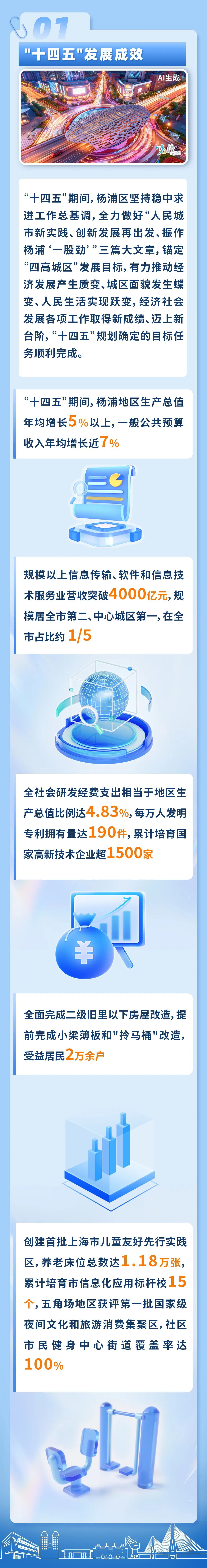 “十五五”时期是上海乘势而上的全面发力期,也是转型升级的攻坚决胜期。站在新的历史起点,谋划好未来五年发展蓝图,既是践行国家战略的使命担当,也是回应市民对美好生活向往的必然之举。 当前,上海各区陆续发布了“十五五”规划纲要,为让大家更好地读懂各区“十五五”发展部署,我们推出系列推文。 本期介绍的是杨浦区。未来五年,杨浦将怎么发展?展望“十五五”,杨浦这么干。一图读懂↓