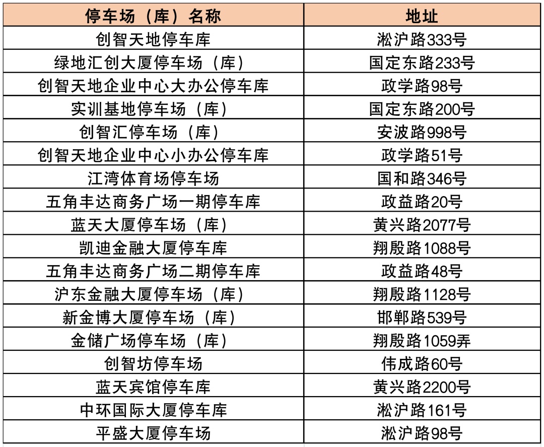 注:各停车场(库)泊位数量、收费标准以现场信息为准