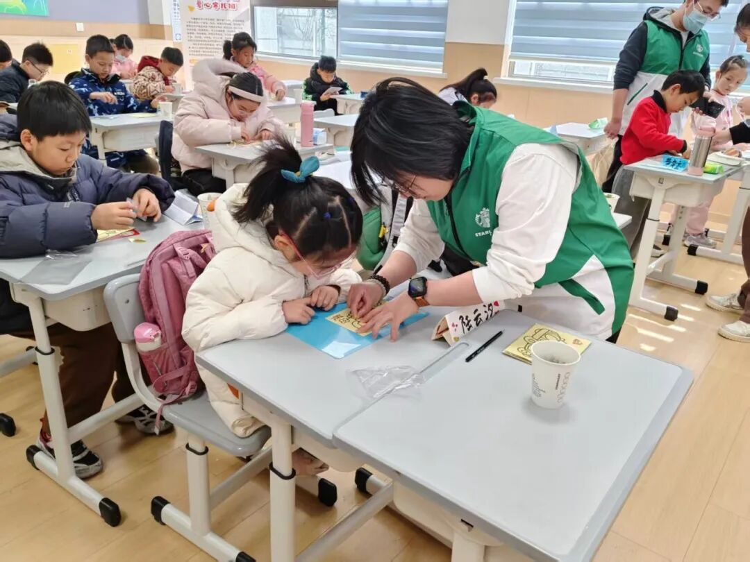 传统文化课堂同样热气腾腾。少儿快板课上,老师手把手教握板姿势,单点、双点的节奏声里,孩子们解锁了新技能;非遗窗花剪纸活动中,一把剪刀、一张红纸,年味便在指尖流淌。