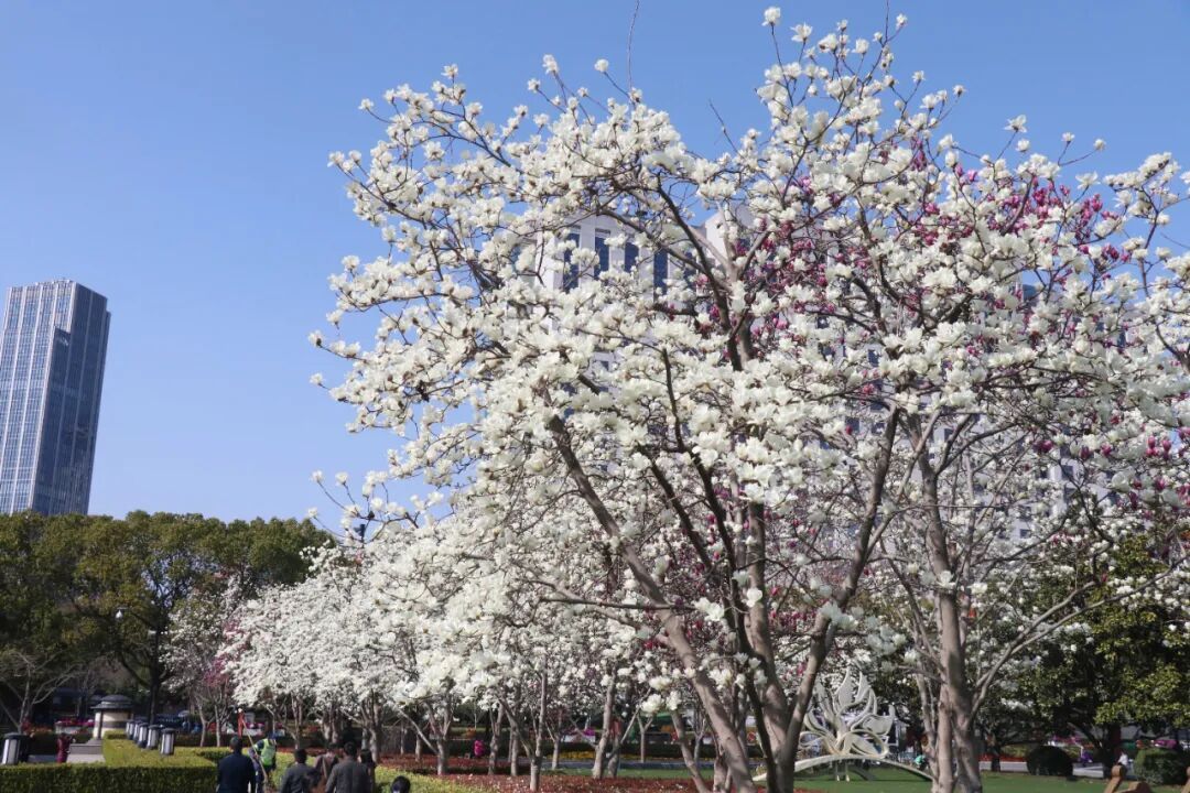 近年来,本市园林绿化部门通过规模化种植,让市民能就近邂逅白玉兰的美:新增白玉兰观赏点位约150个,应用白玉兰3000余株,还有其他玉兰品种约3000株,走在上海的街头巷尾、公园绿地,随时都能与这抹清雅花香撞个满怀!