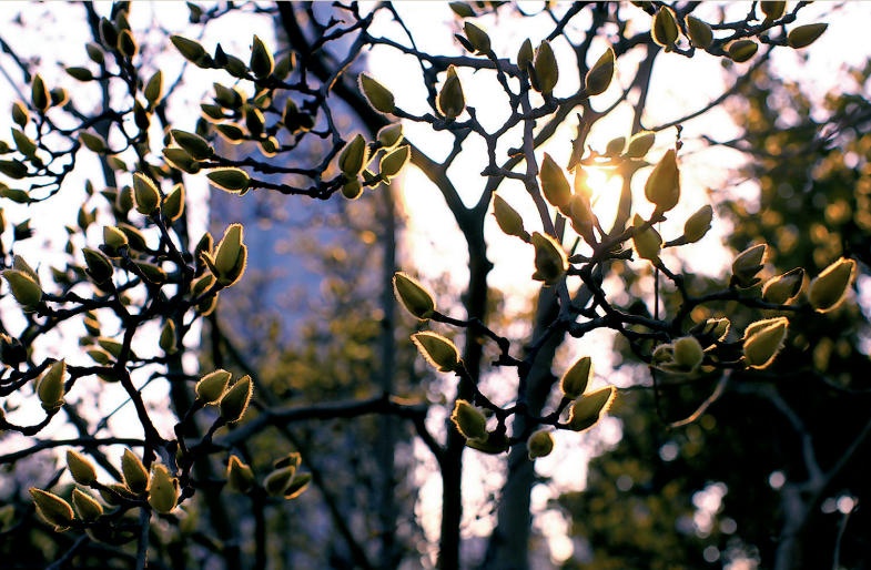 眼下,我们正坐在开往春天的列车上 不经意间发现白玉兰的枝桠上 花蕾含苞待放 仿佛一个个嫩绿的襁褓 藏着春的密语与思念 恰如《离骚》中“朝饮木兰之坠露”的雅致 又似古人笔下 “霓裳片片晚妆新”的婉约