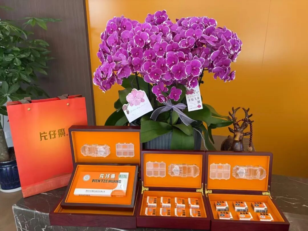 店内最核心的展品自然是那颗被誉为“药中茅台”的黄色药锭——片仔癀。片仔癀的历史可追溯至明朝嘉靖年间,原为宫廷御医秘方,后流传至民间,至今已有500多年历史。店长介绍道,“它主要就是保肝护肝、清热解毒。现在生活节奏快,熬夜多,应酬多,其实很需要这种温和的调理。”她还分享了片仔癀的一些不寻常的用法:“比如口腔溃疡,把药粉涂上去,一两天就能好;家里老人要是有糖尿病足溃烂,配合内服外敷,消炎效果也很好。”
