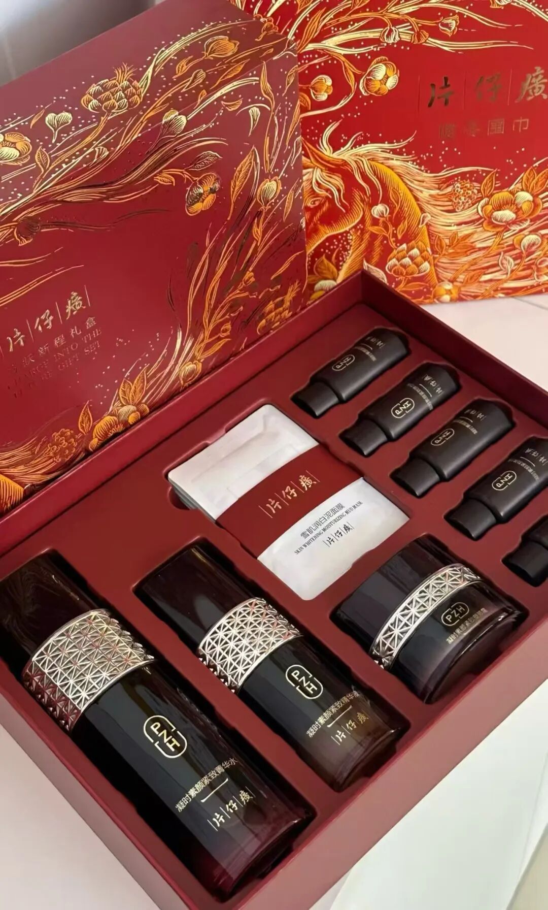 不过,现在的片仔癀国药堂已不仅仅售卖那颗昂贵的药锭,店长介绍了店内琳琅满目的片仔癀“周边”,从药品延伸到了日常养生和美妆。对于上海的老年群体,这里有安宫牛黄丸作为家庭急救储备;对于爱美的人士,拥有几十年历史的皇后牌珍珠膏,以及最新的马年限定护肤套盒成了送礼首选。