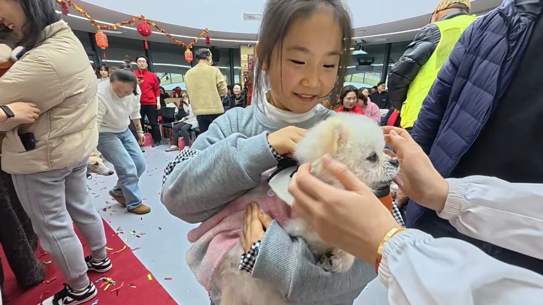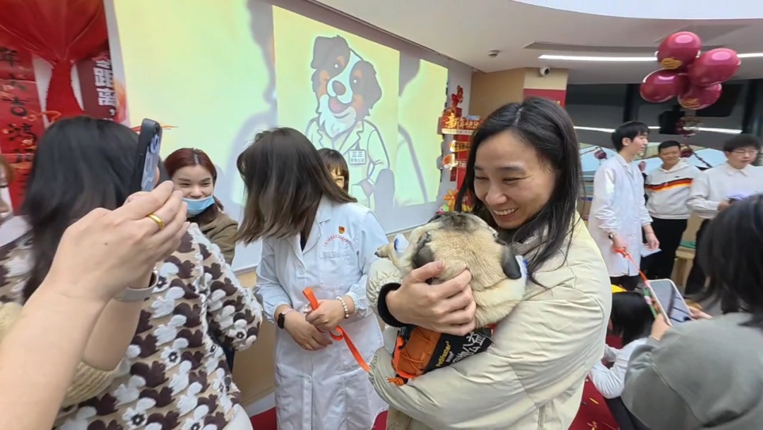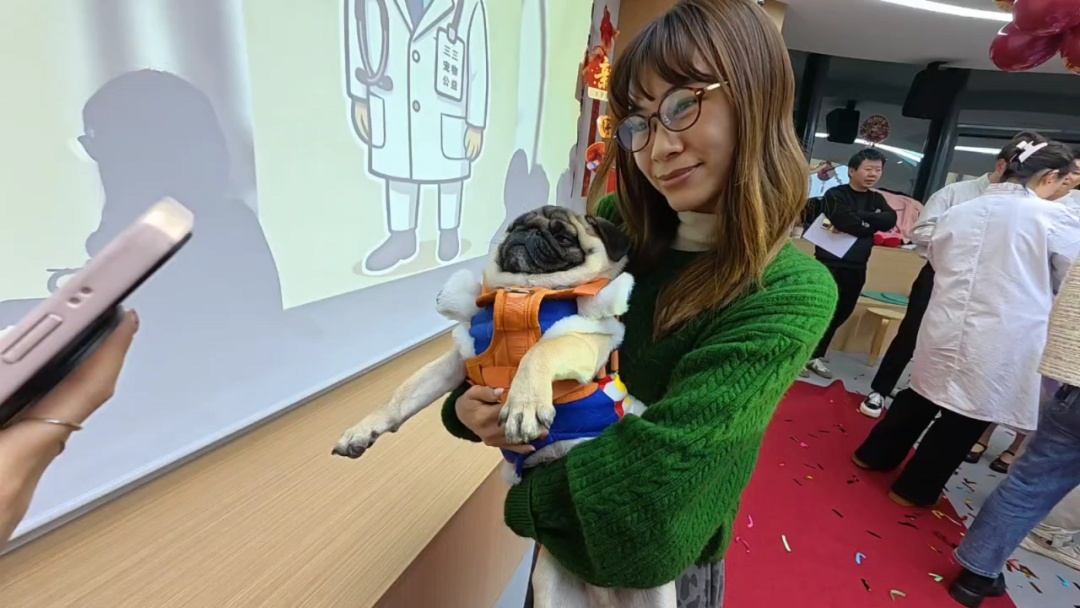 走秀环节结束后,现场迎来了温馨的“专属撸狗时光”。在三三宠物公益服务中心工作人员的引导下,社区卫生服务中心的职工们分批次、有序地与参与走秀的宠物展开互动。工作人员耐心地为大家简要介绍每只宠物的独特性格以及互动过程中的注意事项,确保互动环节安全、愉快地进行。在确认宠物状态良好后,职工们纷纷与宠物自由交流,有的轻轻抚摸宠物的毛发,感受它们的温暖与柔软;有的与宠物亲密合影,记录下这美好的瞬间,将“医宠相伴”的活动主题悄然融入在现场的欢声笑语中。
