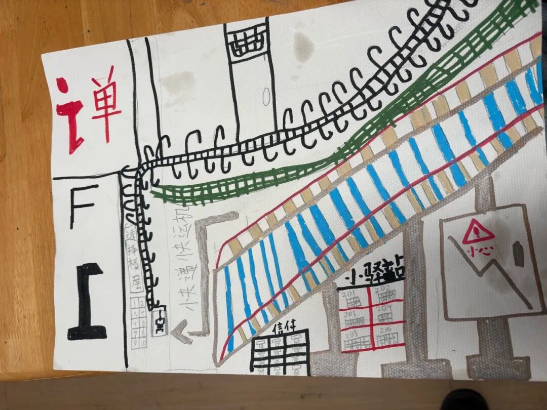 学员刘泽宇精心创作了画作《快递运动机》,在作品中设计了可自动将快递送上楼的传送带。谈及创作初衷,他表示,希望通过这样的设计,减轻快递外卖员上下楼的奔波负担。此外,还有寒托班学员也将平日里观察到的社区爱心接力站、社区食堂等暖心场景,巧妙融入自己的作品之中。