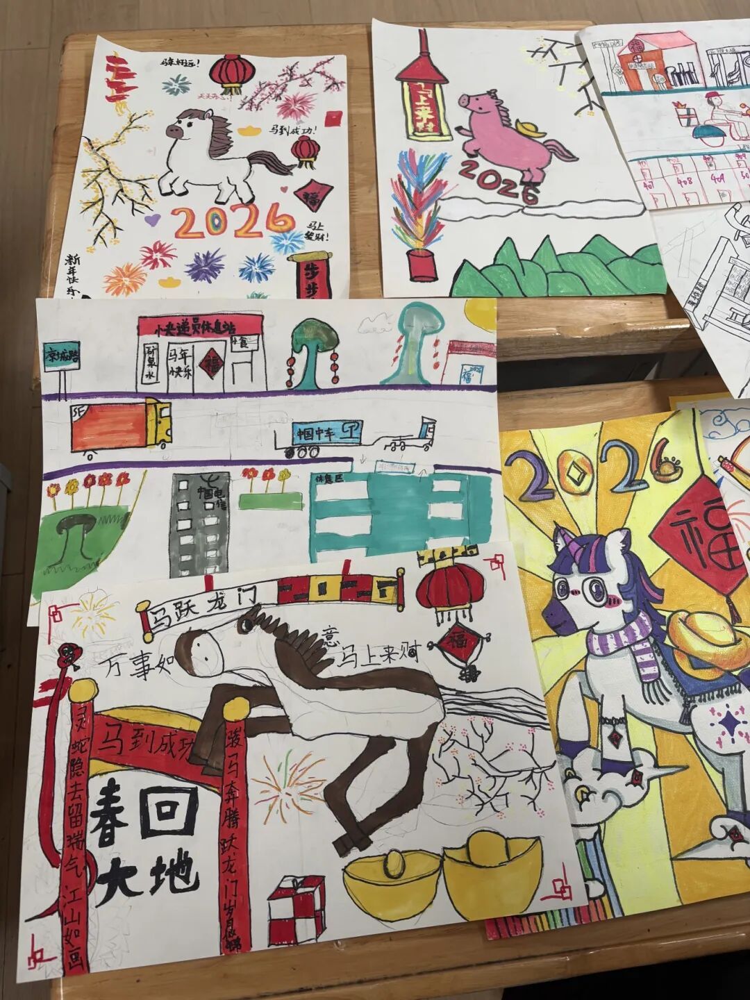 “每个孩子对生活的观察都充满童真与细腻,在‘如何让身边更有年味’主题分享中,他们用稚嫩的语言诠释‘马到成功’的美好寓意,描绘对新一年的成长憧憬。在‘我眼中的城市骑士’课题中,孩子们通过观察和想象来理解基层劳动者的辛劳,学会尊重与感恩。”广中路街道表示,孩子们用自己的方式,传递着温暖与善意,也让寒托班成为连接孩子与社会的纽带。