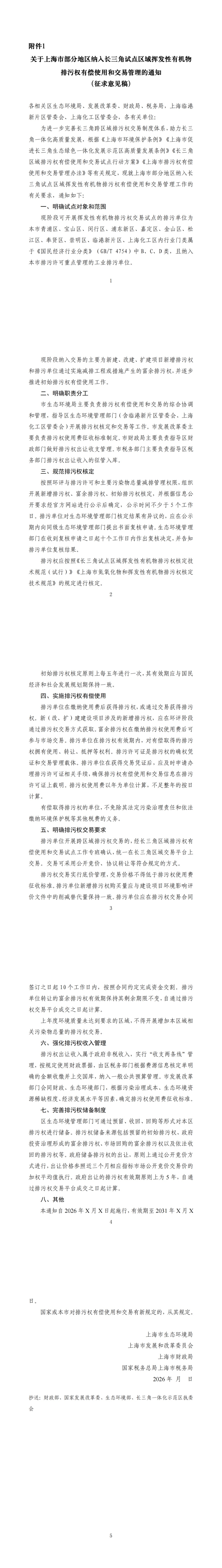 1.关于上海市部分地区纳入长三角试点区域挥发性有机物排污权有偿使用和交易管理的通知(征求意见稿)