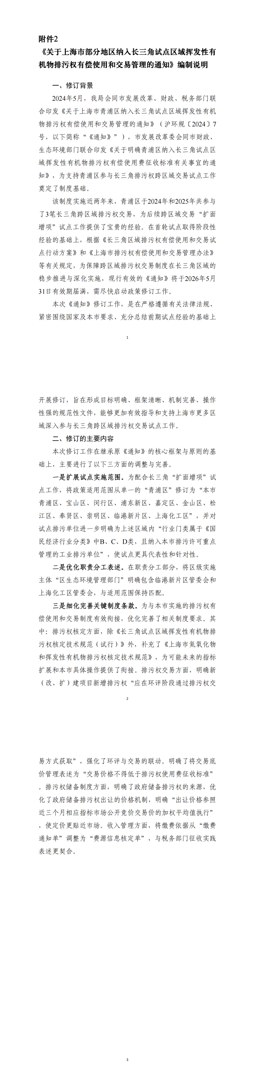 2.《关于上海市部分地区纳入长三角试点区域挥发性有机物排污权有偿使用和交易管理的通知》编制说明