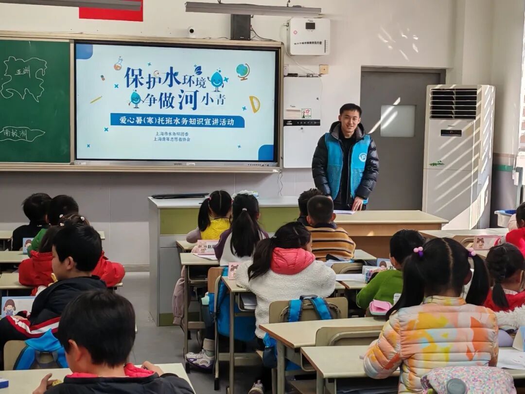 市水务局团委依托“青春沪水人”青年志愿者宣讲团,招募了60余名来自水务海洋行业的青年和大学生志愿者讲师,在浦东新区及徐汇区70余个班级开展《保护水环境 争做河小青》《珍惜小水滴 城市更美丽》《爱蓝色海洋 绘美丽中国》等一系列生动有趣的水务海洋公益课程,直接服务小学生超过2000名。