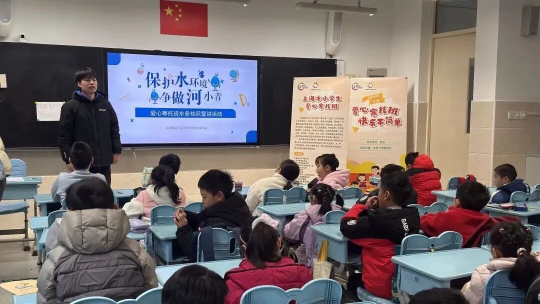 本次爱心寒托班全覆盖配送课活动,是闵行区水务局联动联建单位凝聚青春合力、践行公益责任的重要举措。通过专业的科普课堂、有趣的互动体验,不仅丰富了孩子们的寒托班生活,更让节水护水的环保理念深深扎根在孩子们心中,以“小手拉大手”的力量带动身边人共同参与水环境治理,共同守护闵行水清岸绿、河畅景美的生态画卷。