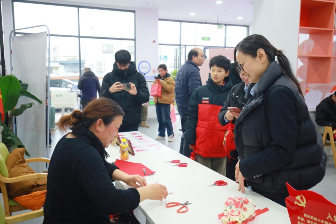 剪纸区域前围满了跃跃欲试的司机师傅,一方红纸铺展,非遗传承人手持剪刀示范指导,司机师傅们凝神专注,一折一剪,一个“福”字就诞生了。一旁的书法专区,大家则将新春的美好期许凝聚于笔尖。