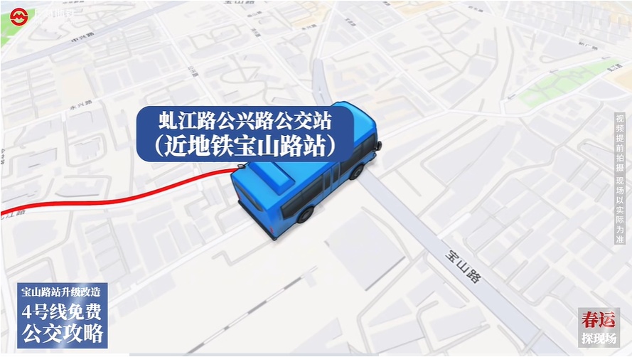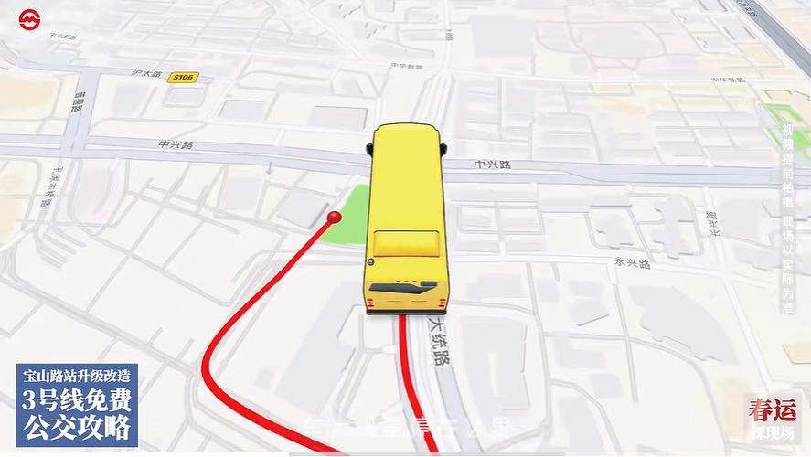 为配合上海地铁3/4号线 宝山路站轨道增设及站台扩容施工 保障市民正常出行 2026年2月16日(除夕) 至2月22日(初六)期间 分别开设两条公交接驳线路 ♥ ♥ ♥ (3号线接驳线)
