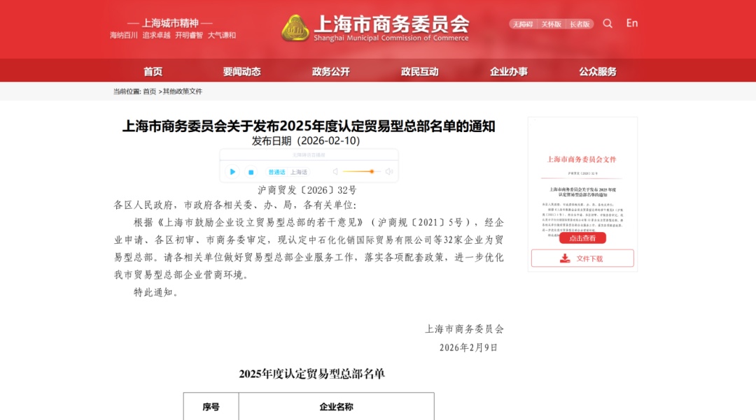 近日,2025年度上海市贸易型总部企业申报认定结果公布,全市共32家企业被认定,其中浦东(含临港)15家企业上榜,来自保税区域的上海伟仕佳杰科技有限公司、赛默飞世尔科技(中国)有限公司、松下电器全球采购(中国)有限公司、英飞凌科技(上海)有限公司、武田(中国)国际贸易有限公司、西门子医疗系统有限公司6家企业上榜。