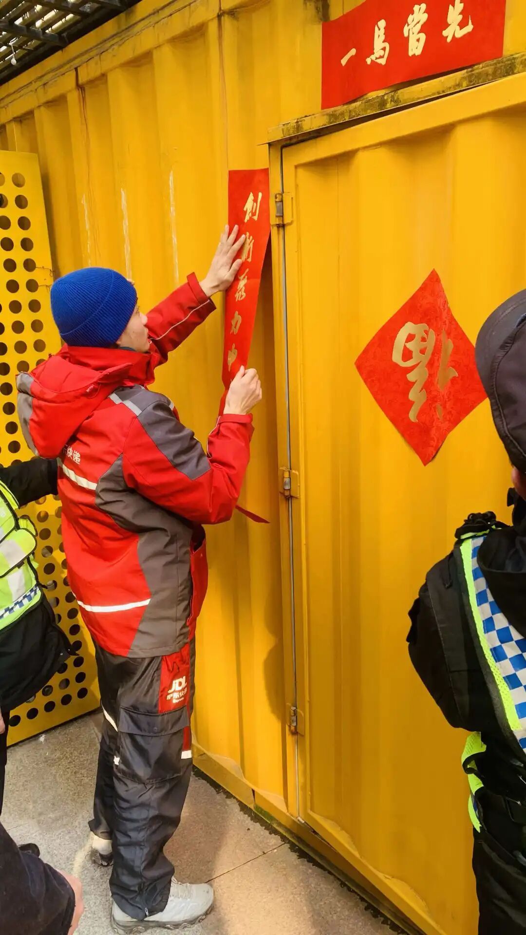 为让留沪劳动者沉浸式体验小年氛围,暖蜂友巢爱心服务站早已精心布置完毕。大红的灯笼高高悬挂,喜庆的福字、吉祥的春联整齐张贴,一抹抹亮眼的中国红将服务站装点得温馨十足,浓厚的新春年味扑面而来。这份温情不仅驱散了冬日的凛冽寒意,更轻轻抚平了大家的思乡情愫,让服务站成为留沪劳动者的暖心港湾。