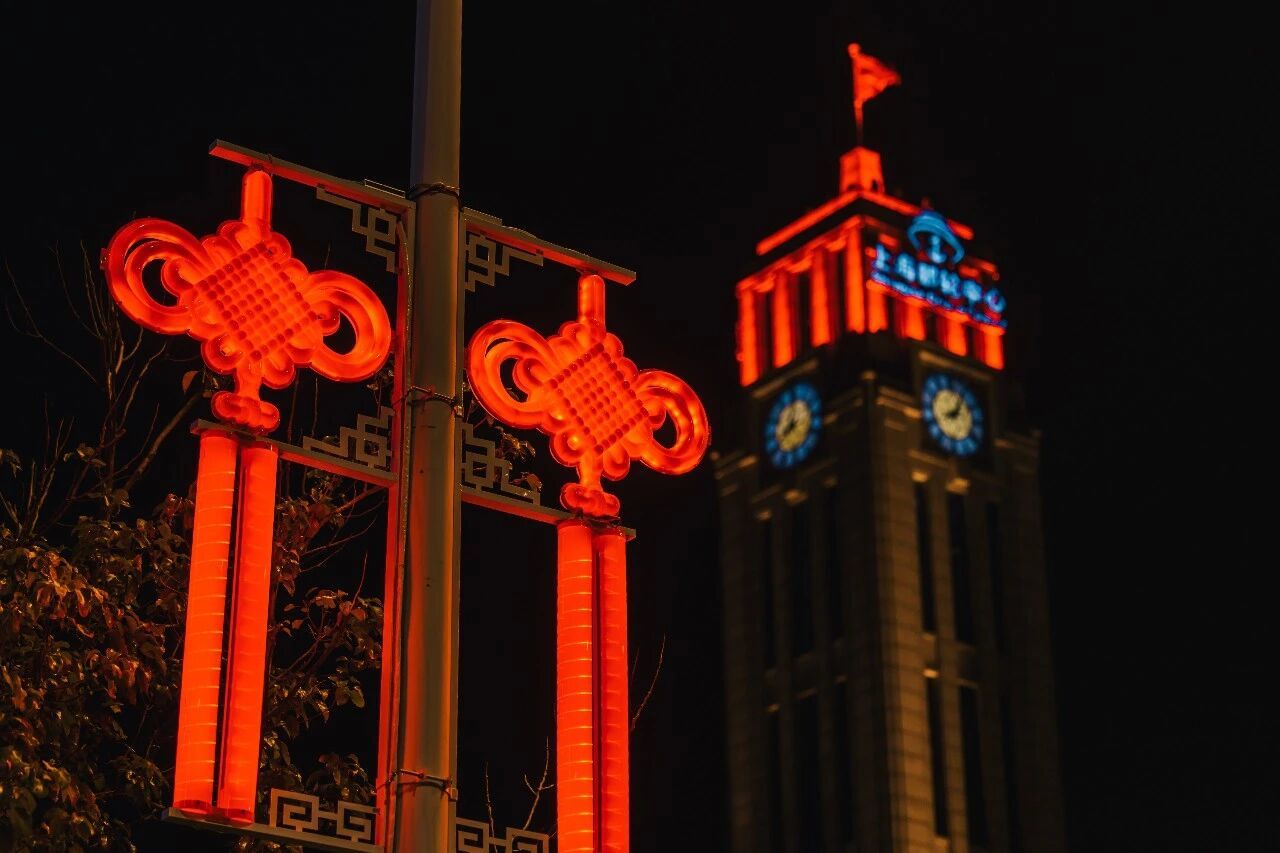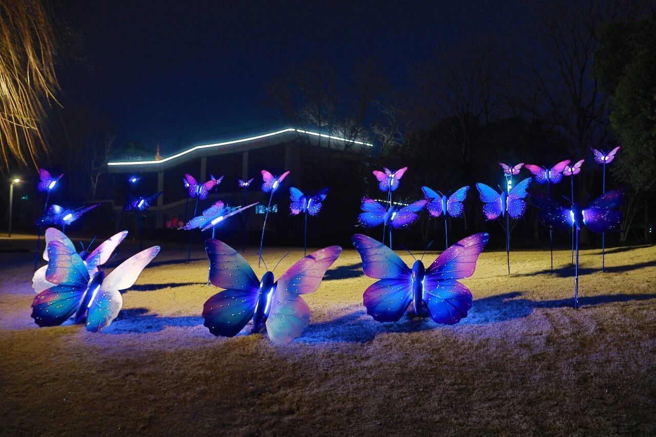滨江公园里,光影蝴蝶在夜色里轻轻起舞;