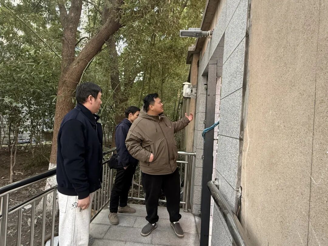 西门现场施工基本结束后,居委书记同监控施工方、物业在现场确认监控位置,确保小区居民安全。