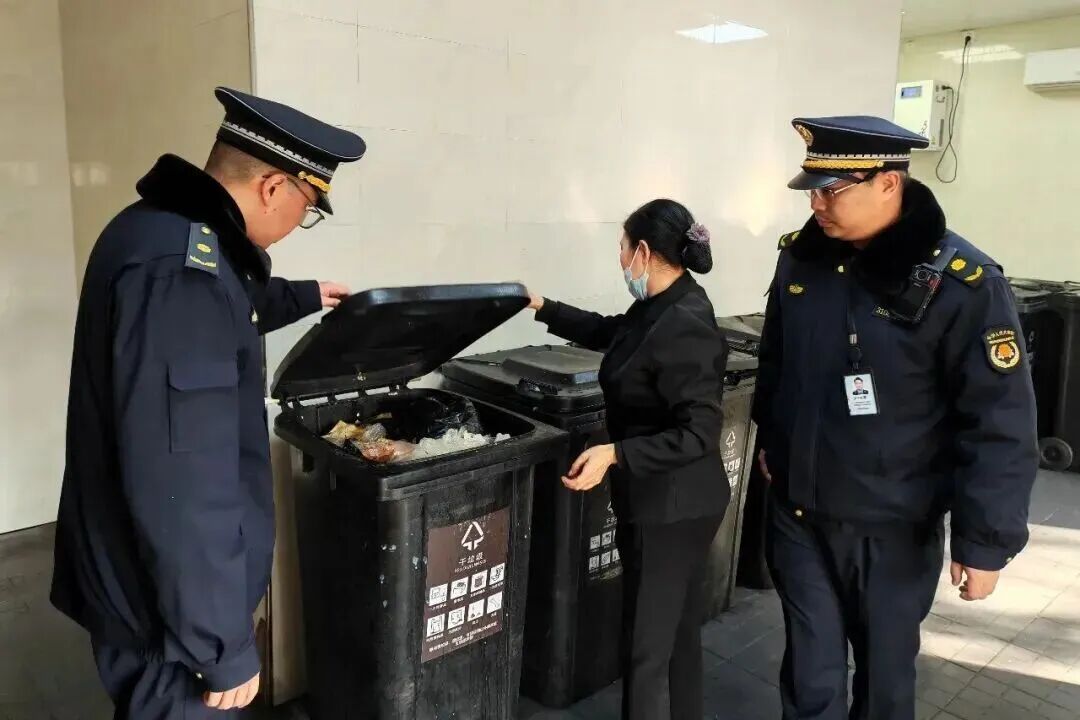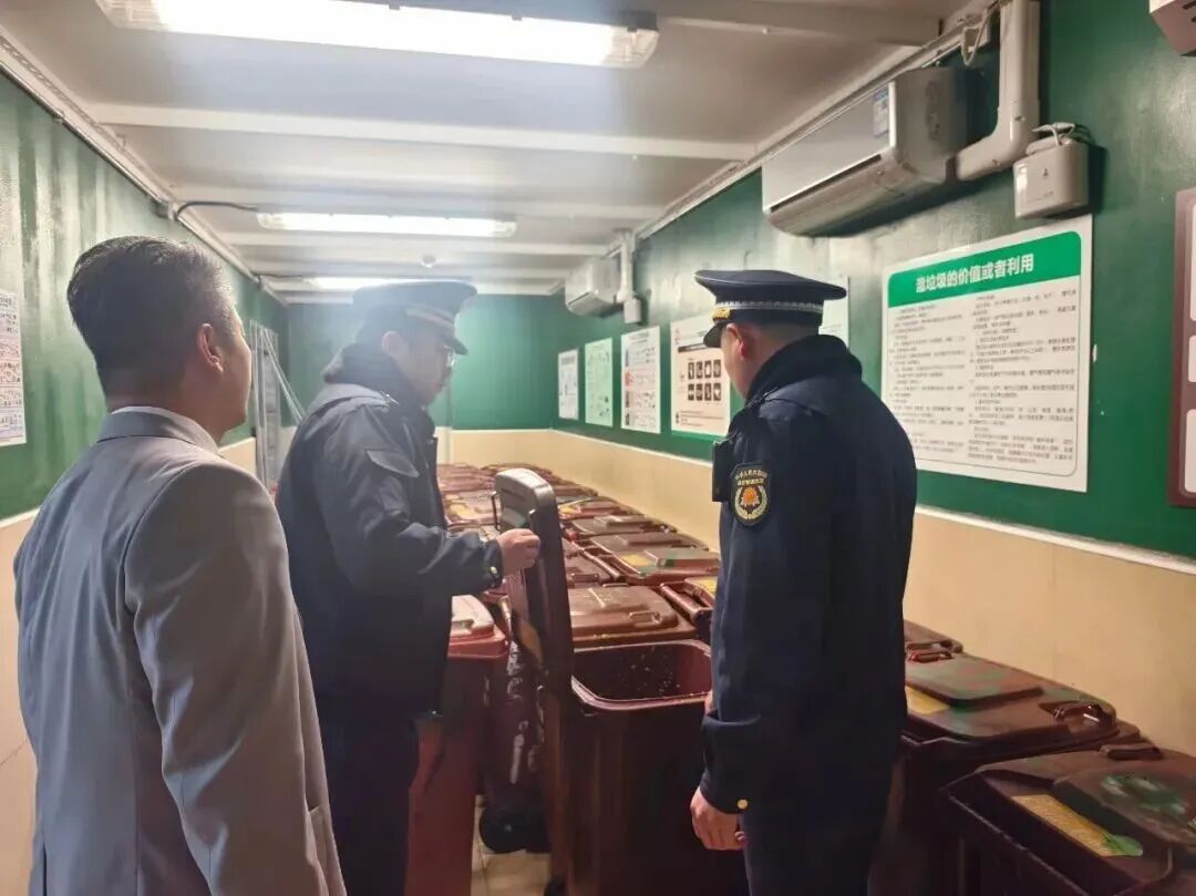 针对春节前后文化场馆客流攀升、周边商圈垃圾量激增的特点,浦东城管将检查触角同步延伸至小区。商圈一侧,重点看厢房设施完好度、分类标识清晰度、收运台账;小区一侧,紧盯小包垃圾落地、混投混放、定时定点执行情况。队员逐一开盖查验,不留死角。在执法同时,城管队员主动向物业、居民发放宣传资料,强调“节日期间责任不松懈”,让整洁环境成为新春最亮眼的底色。