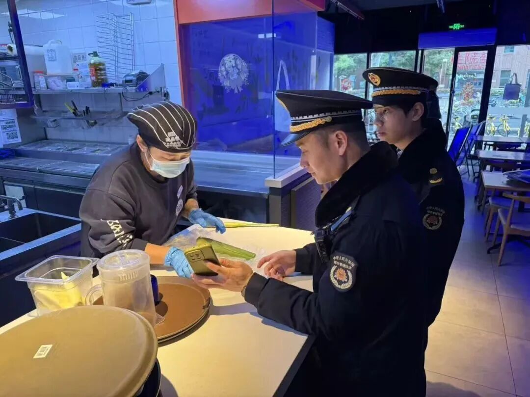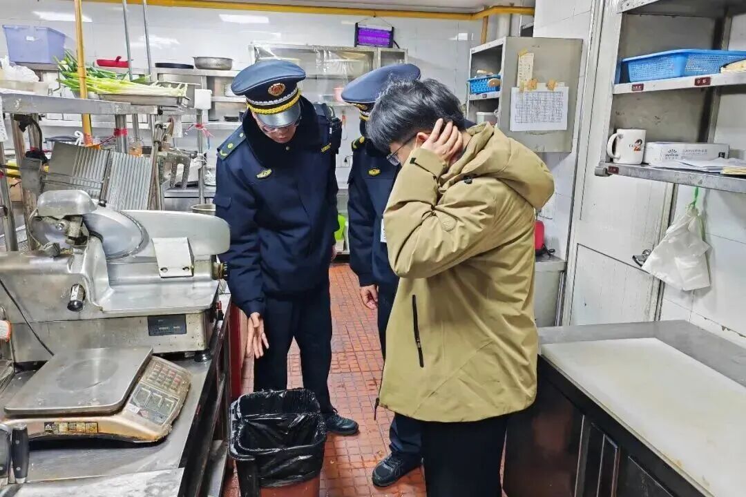 节前是消费旺季,普陀城管对商业综合体、沿街餐饮开展“拉网式”排查。后厨、仓储区、垃圾厢房,一处不落。混投、容器脏污、台账滞后——发现问题当场开具《责令改正通知书》,并明确复查时间。更关键的是,普陀城管依托街道城运中心“一网统管”平台,问题商户被纳入重点监管名单,不定期突击复查,确保整改不反弹。