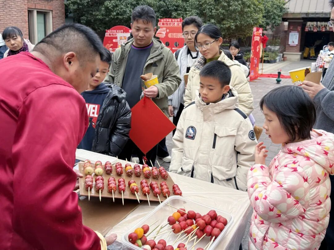 健康监测专区贴心为居民提供免费基础体检和健康咨询服务,工作人员耐心细致地为居民讲解冬季养生知识、常见疾病预防技巧,把健康关怀送到居民家门口、送到群众心坎上;烤地瓜、爆米花等特色美食摊位香气四溢,熟悉的味道不仅温暖了冬日的时光,更勾起了不少居民的童年回忆;永生花书签、新春拓印等手工DIY活动,吸引了各个年龄段的居民参与,大家在动手实践中感受乐趣,在相互协助中拉近邻里距离、增进邻里情谊。