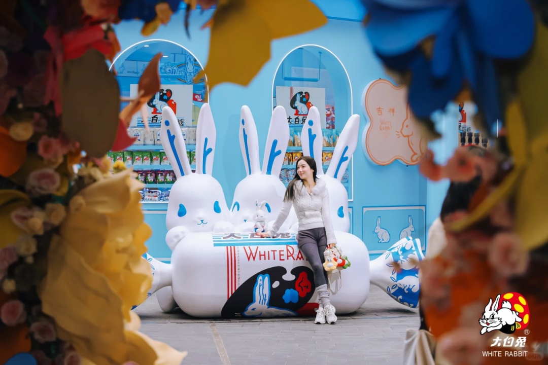 花朵枝蔓缠绕,还有巨型奶糖装置和经典大白兔IP造型,连呼吸都带着甜甜的奶香味。