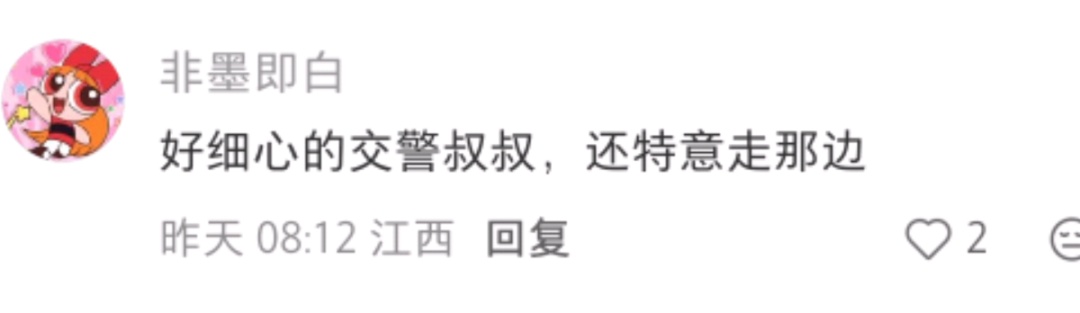 一路上,博主反复向辅警道谢,到达目的地后,还不停叮嘱:“你快去忙吧,谢谢谢谢。”