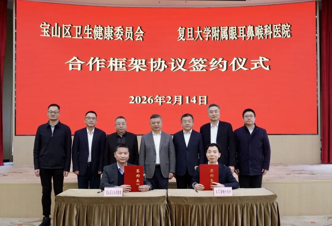 2月14日上午,宝山区卫健委与复旦大学附属眼耳鼻喉科医院签署合作框架协议,进一步构建资源共享、优势互补、深化合作新局面。区委书记李晨昊,复旦大学党委常委、复旦大学上海医学院党委副书记、副院长徐军出席仪式并讲话。区委副书记、区长邓小冬主持仪式。区委副书记陆奕绎,副区长丁力,复旦大学附属眼耳鼻喉科医院党委书记钱飚,复旦大学附属眼耳鼻喉科医院党委副书记、院长周行涛,复旦大学上海医学院医院管理处处长龙子雯等出席。