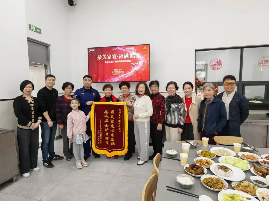 家宴开始前,黄浦区最美家庭文明联盟代表向复兴消防救援站赠送了一面锦旗,以此表达全区最美家庭对消防指战员的崇高敬意与新春祝福。