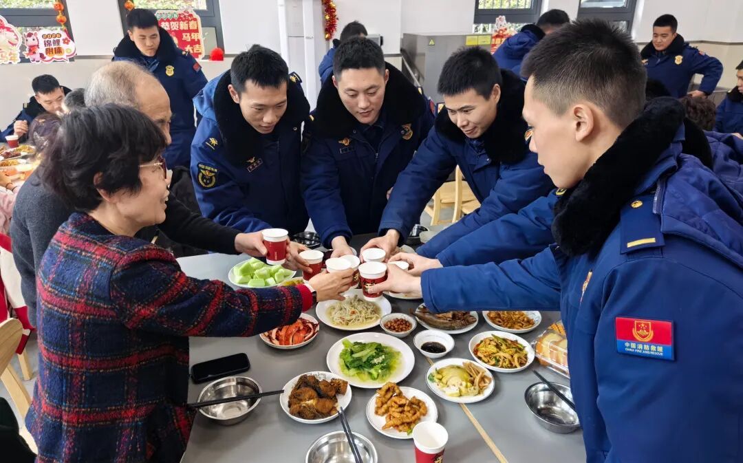 一张圆桌,承载着两份“最美”的相遇;一席家宴,融汇着人间烟火的深情厚谊。活动现场,最美家庭代表与消防指战员围坐一堂,热气腾腾的年夜饭上桌,熟悉的饭菜香瞬间拉近了彼此的距离。大家一边品尝着美味的年夜饭,一边分享着各自的生活故事。最美家庭代表们讲述了家庭中的温馨瞬间、邻里之间的互助情谊以及参与公益活动的感受;消防指战员们则分享了他们在执行任务时的惊险经历、对家人的思念之情以及坚守岗位的责任感。大家你一言我一语,温情在交流中静静流淌。最美家庭代表们被消防指战员们的英勇事迹所感动,消防指战员们也被最美家庭们的温馨故事所温暖。