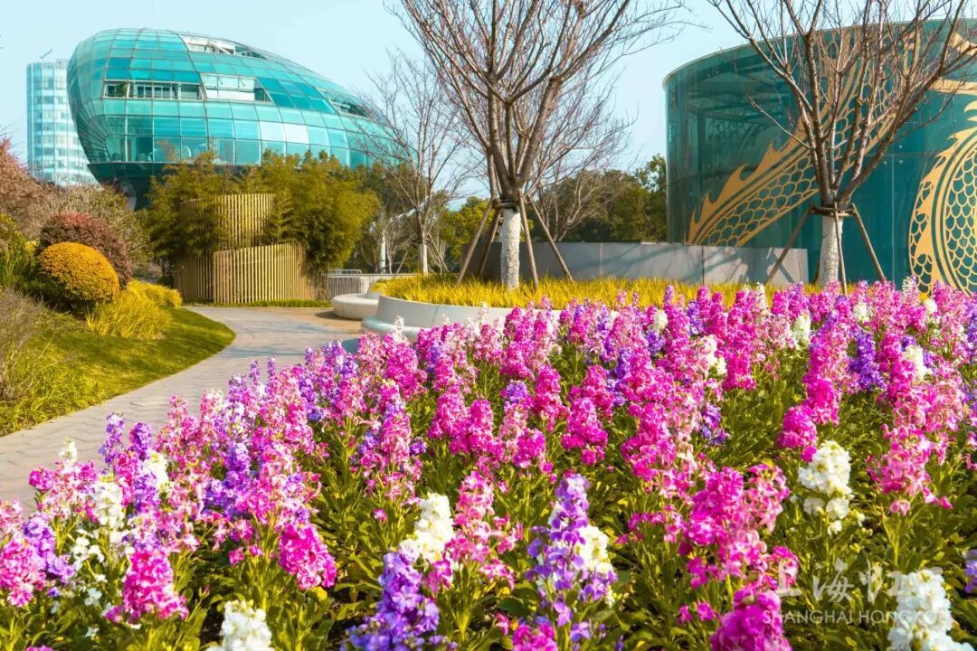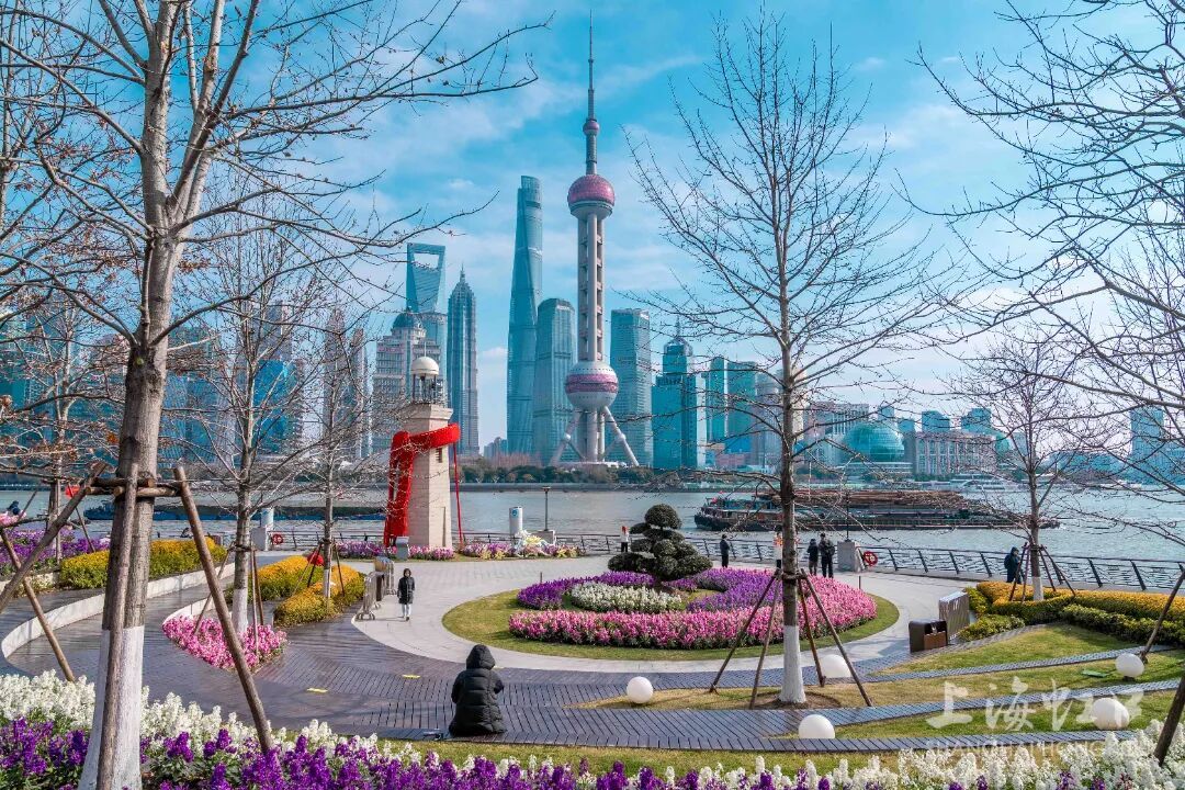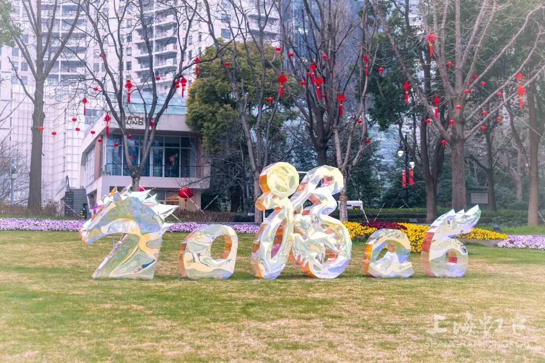 北苏州路的“飞马踏云”造型自带仙气,搭配脚下“马到成功”的立体炫彩大字,阳光一照瞬间折射出彩虹光芒。漫步在此,一侧是缤纷花境点缀的滨水步道,一侧是复古与现代交融的城市建筑,交织出虹口独有的新春格调。