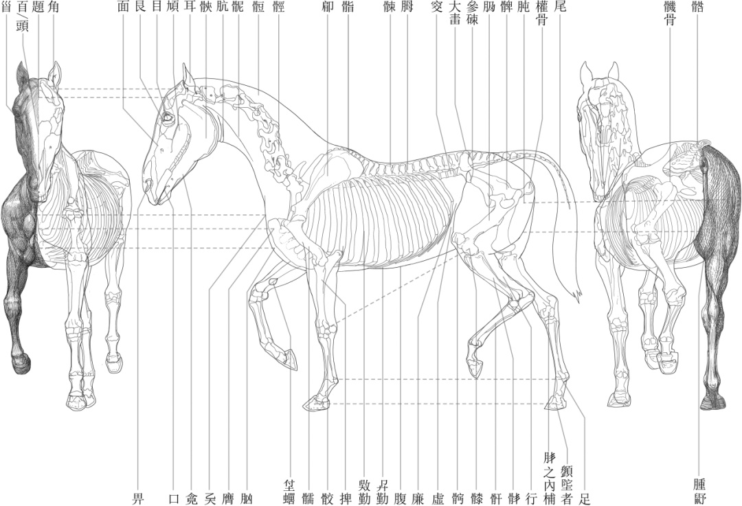 《胥马》马体部位名称推拟图(贾连翔绘制)