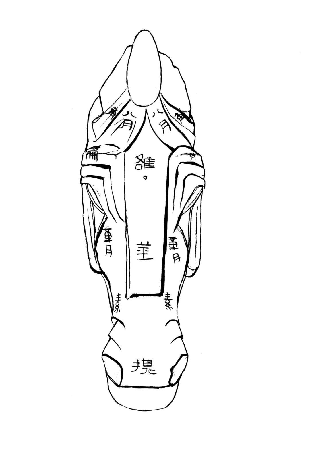 铜马式头部前视图及摹本(董珊制作)