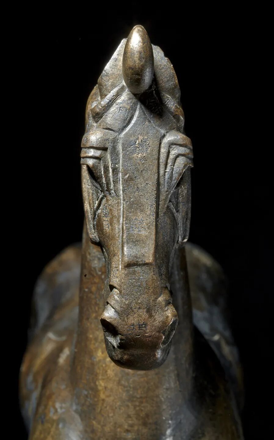 可惜以往所说的马式缺少确凿无疑的证据,无法证伪,也无从证真。不过,乐从堂所藏的一件青铜马,则是学界公认的确切无疑的马式。之所以如此,是因为这件铜马的头面、身体、四足等部位有72处错银铭文,标示了马匹各种部位、肌肉、骨骼、穴位的名称,其中许多术语可以跟《齐民要术》卷六、马王堆帛书《相马经》的术语相对照,证明了这件青铜马与相马术的直接联系。