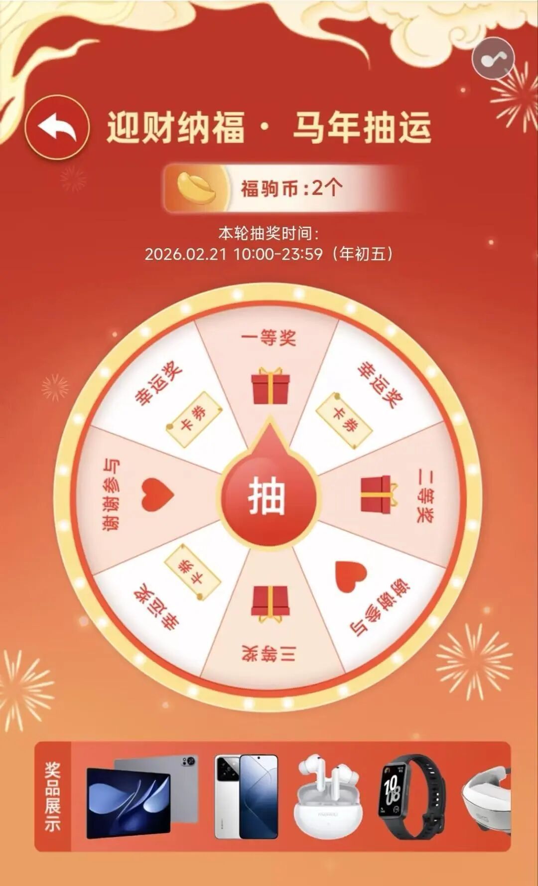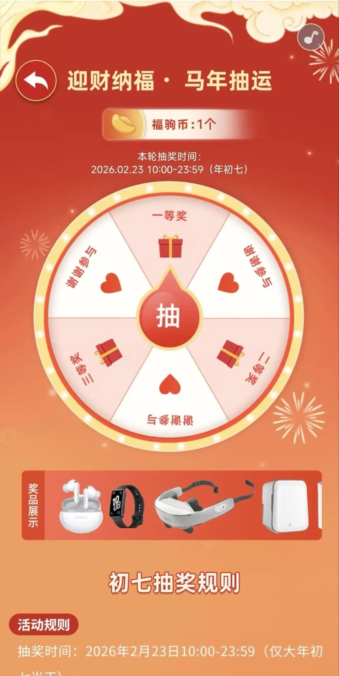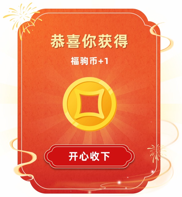 即可获得1枚 “福驹币”。