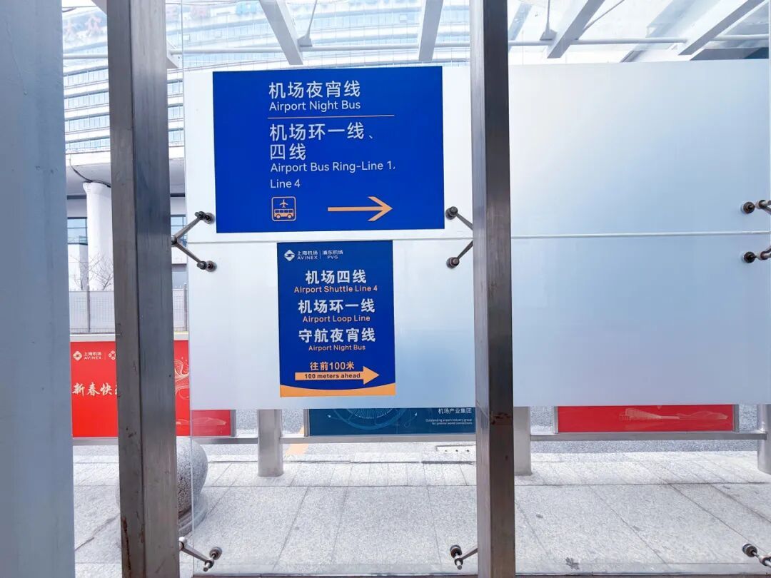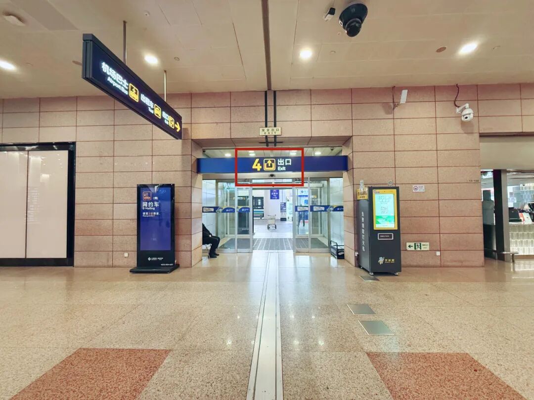 从国内到达出口离开的旅客可以通过对面的4号门抵达地面公交候客点↓