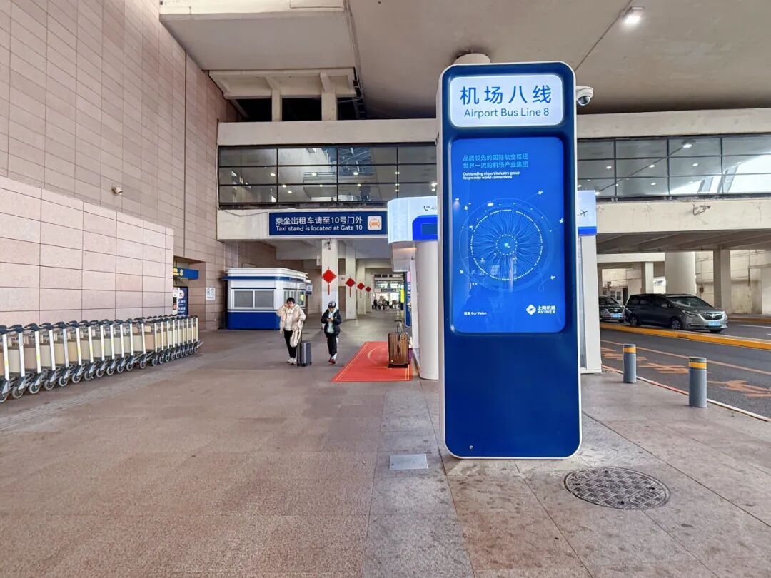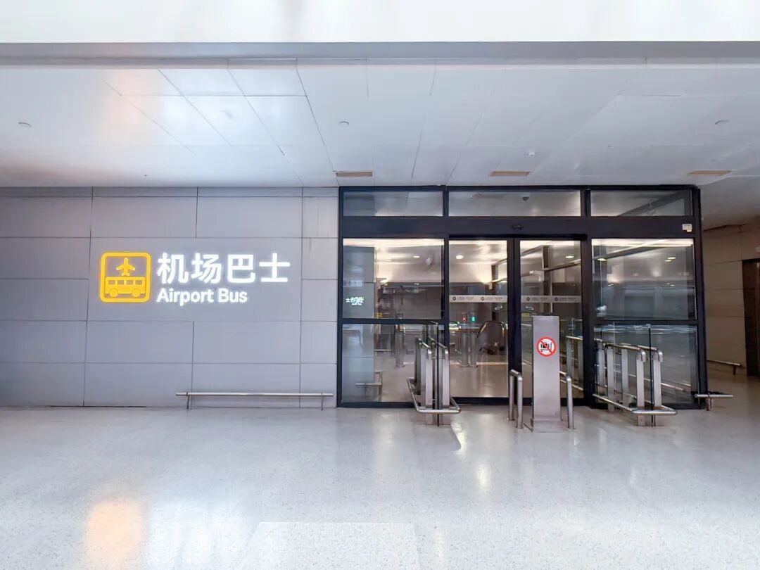 从国际、港澳台到达出口离开的旅客可以通过对面的8号门抵达地面公交候客点↓