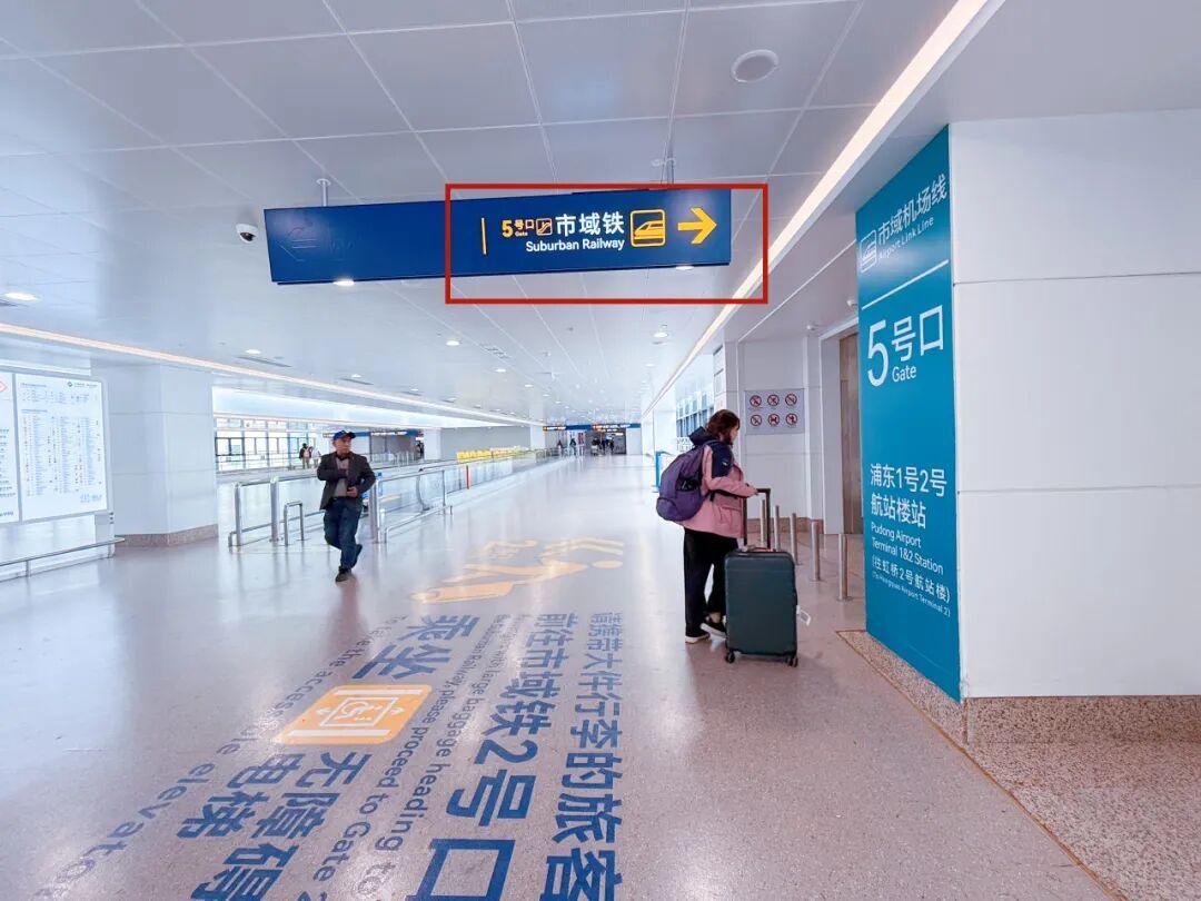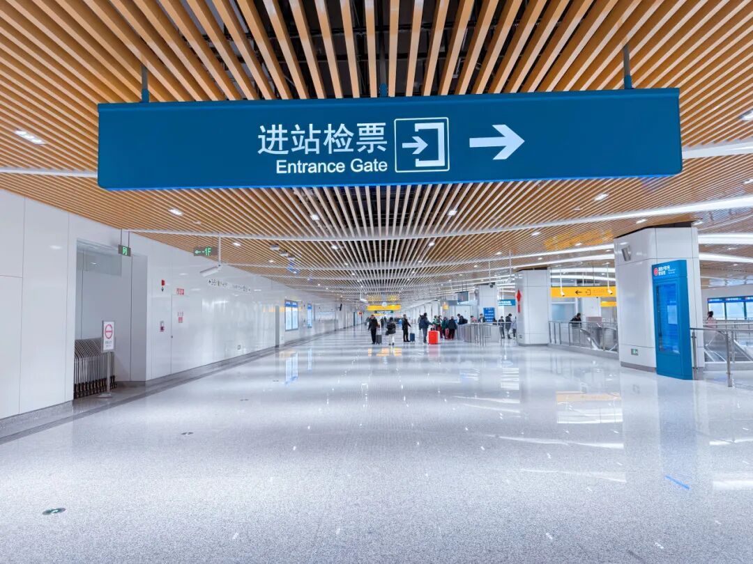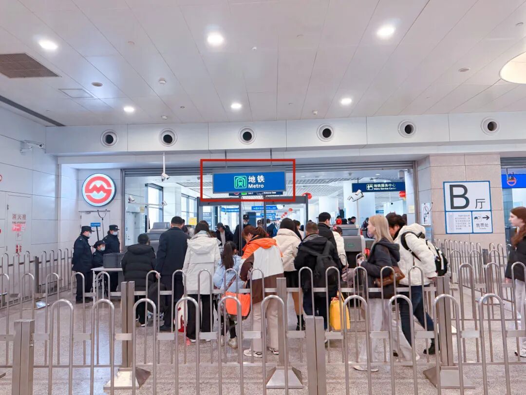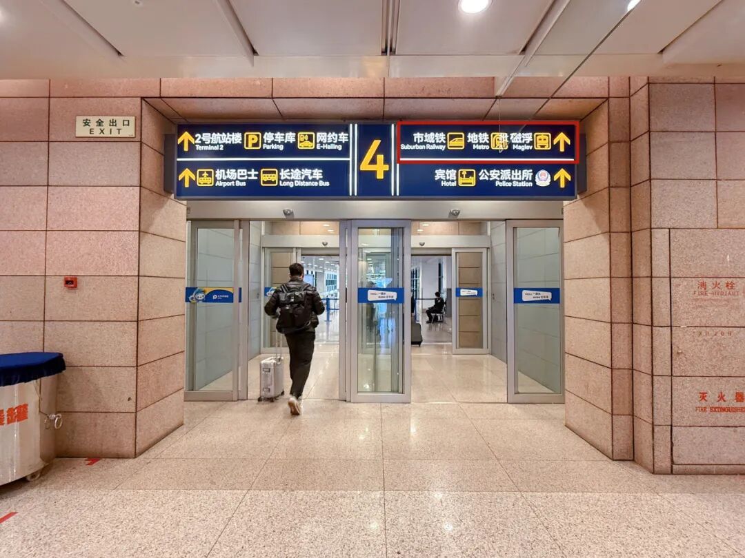 根据标识,步入换乘大厅,一侧是轨道交通2号线进站口,另一侧是磁浮线进站口↓