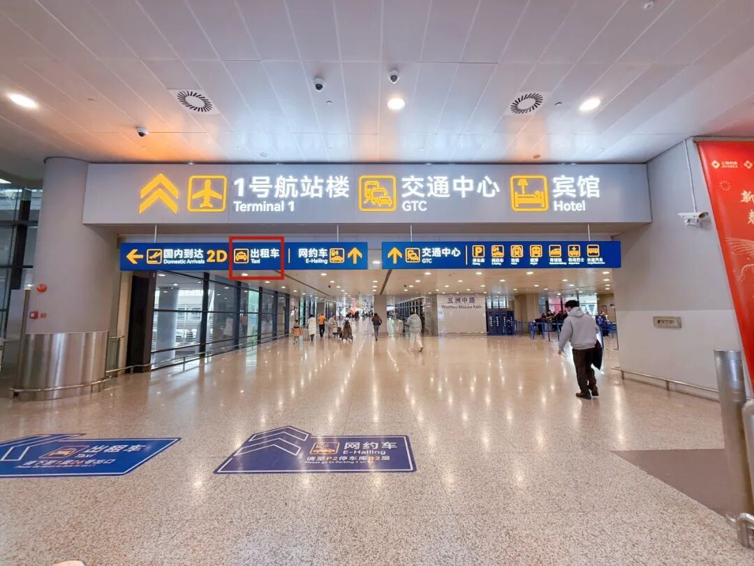 从国际、港澳台到达出口离开的旅客可以通过对面的8号门抵达出租汽车上客点↓
