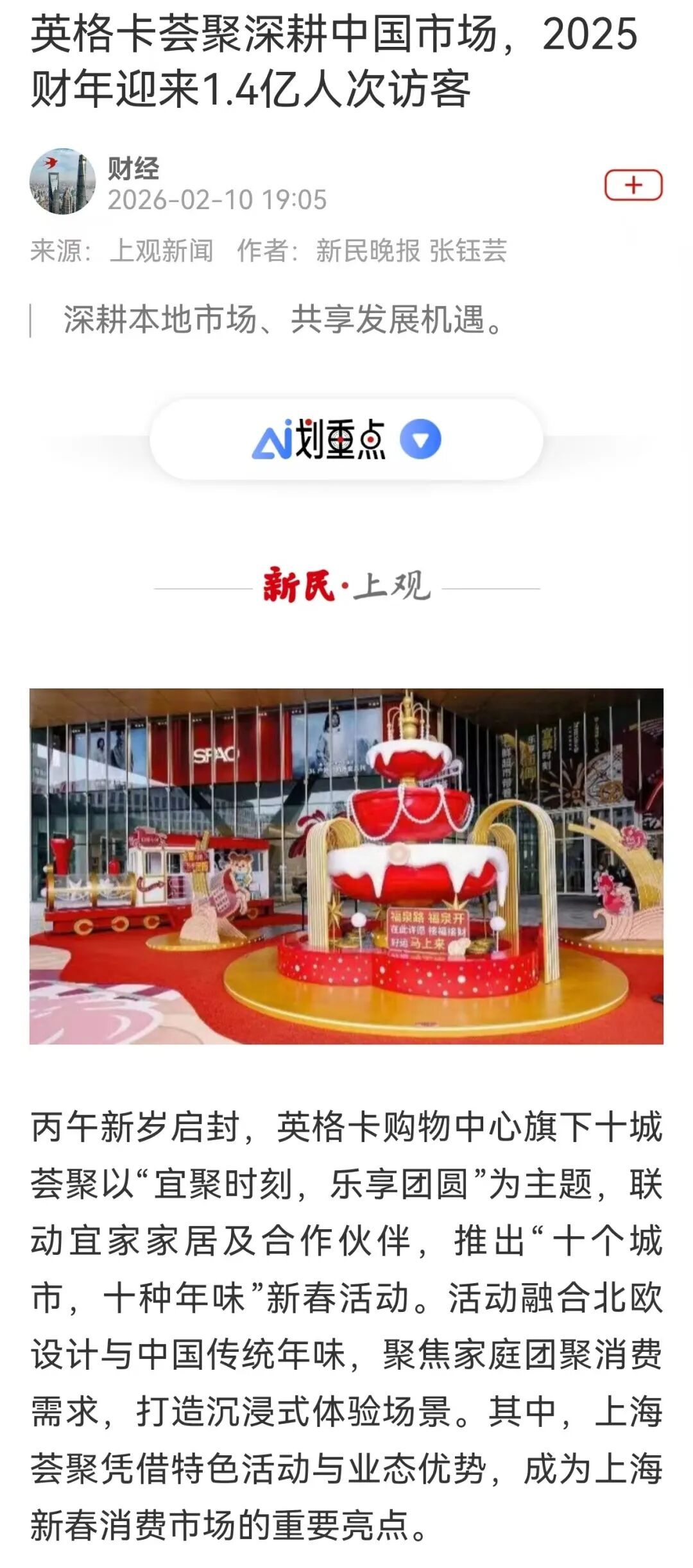 英格卡荟聚深耕中国市场,2025财年迎来1.4亿人次访客