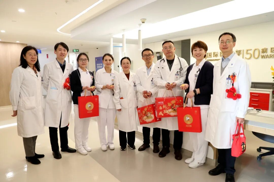 2月15日上午,我院党委书记顾建英、院长周俭,以及孙益红、钱菊英、仓静、李耘、高继明、宋振举、王利新、史颖弘、吴涛等院领导和相关职能部门负责人,先后来到急诊、发热门诊、监护室、病房、营养科、被服间、门卫、食堂等临床、医技与后勤保障部门,向坚守一线的医务人员送去新春祝福和节日问候,感谢他们春节期间守护患者健康。