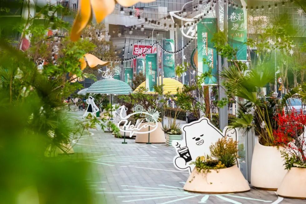 “森光漫巷”在春节前正式开街,用“商业-街区-公园”一体化的空间格局弱化商场与公园的物理区隔。“森光漫巷”由邻近商铺的“花园漫步街区”与靠近市政路的“疏朗休闲街区”两大街区构成,系统打造宠物友好、骑行友好、移动餐车等不同功能的特色点位。