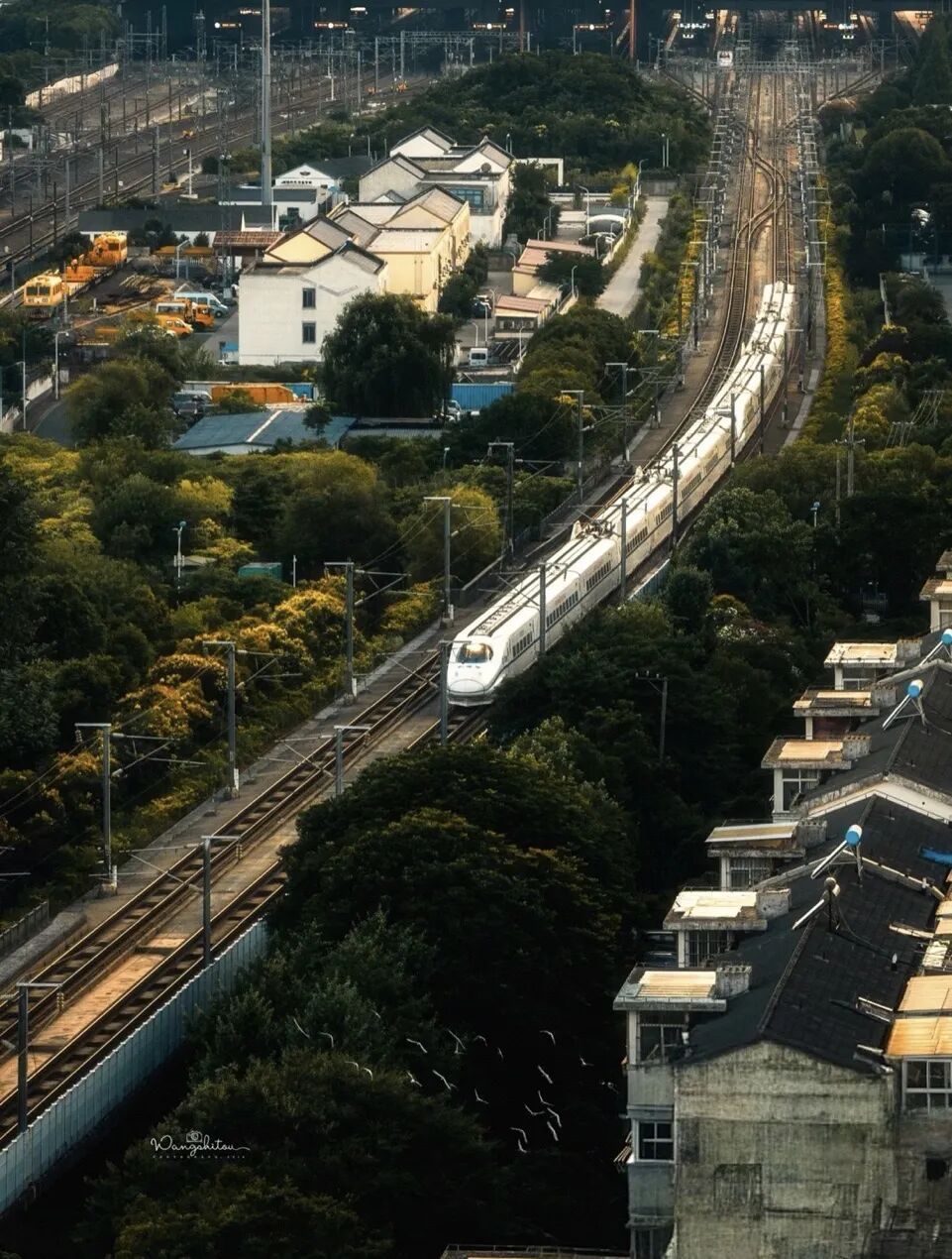 更多的时候,我会在宿舍的窗前,静静凝视这片属于铁路的天空。夕阳把天空染成温暖的橘色,通信塔的剪影在霞光里显得格外挺拔。远处的城市轮廓在薄雾中若隐若现,近处的屋顶和围墙则被镀上了一层金边。我知道,这轮太阳落下后,又会在另一个清晨,在另一段铁轨的尽头,重新升起。