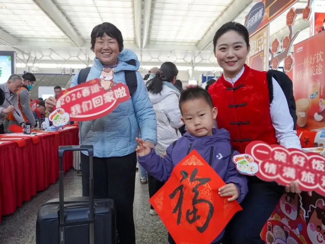 合肥南站候车大厅里,处处洋溢着浓浓的年味。