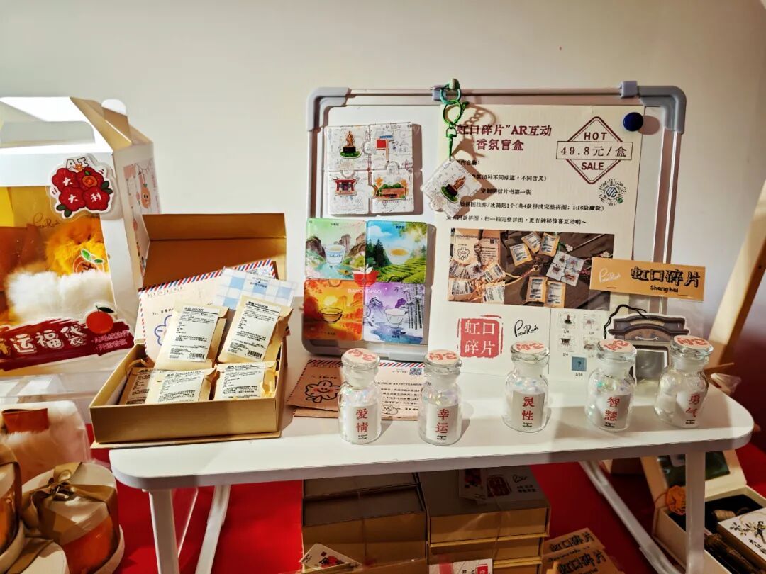 在“海上文创”展区,一个名为 “虹口碎片”的AR CityGame体验吸引了小虹的目光。“虹口碎片”并非简单的实物文创,而是一套融合实体纪念品与手机AR互动的沉浸式城市探索方案。只需使用手机小程序扫描“虹口碎片”,即可在手机屏幕上还原历史场景、触发剧情故事、完成答题解谜,最终解锁完整叙事。这份文创将数字体验转化为可触摸、可留存的美好记忆,以“科技+文旅”的创新形式,为公众提供了一种自主探索城市文脉的全新互动方式。