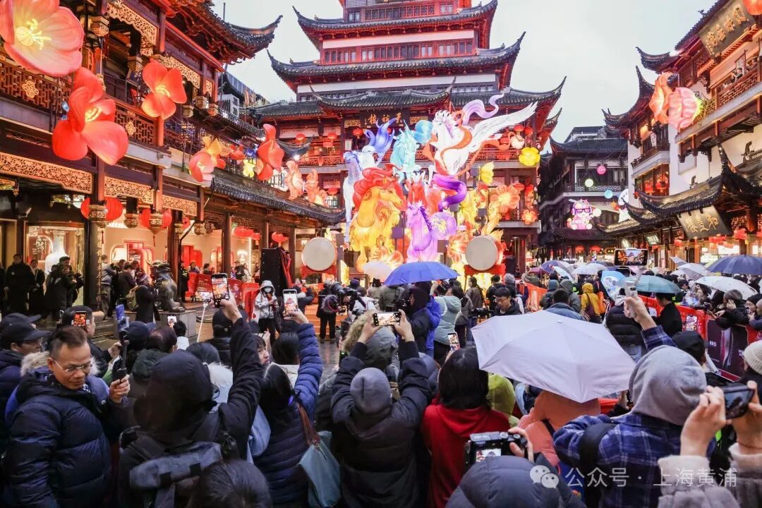 夜幕下的2026上海豫园灯会流光溢彩。从豫园到BFC再到外滩,这条大豫园游玩动线已成为众多游客和市民体验上海年味的首选路线。从豫园民俗艺术灯区的九曲桥畔,到BFC风尚潮流灯区的年味市集,处处人潮涌动。