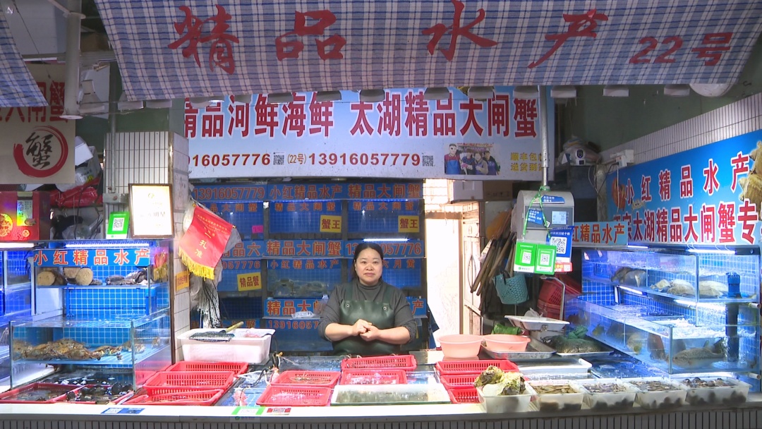 上午,记者在鲁班路上的江南菜场看到,各个摊位前人头攒动,购销两旺。