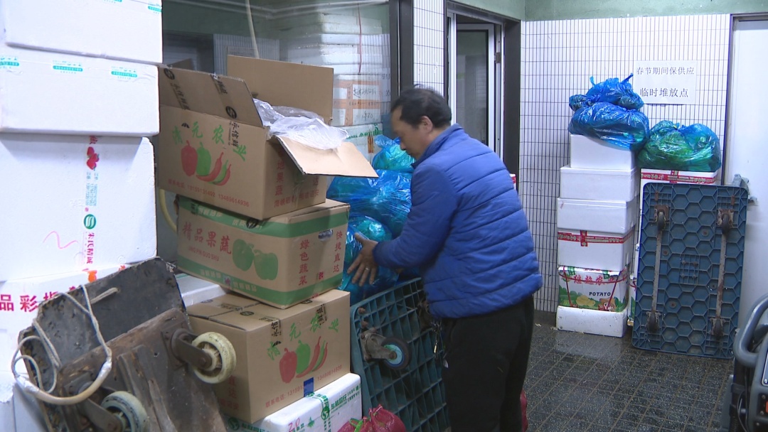 为方便春节期间的正常供应,菜场专门辟出了“春节期间保供应临时堆放点”,满足经营户囤菜的需要。江南菜场经理华巍告诉记者:“今年批发市场今年春节期间不关门,货源不断,经营户可以随时去进货,所以囤货比较少。”