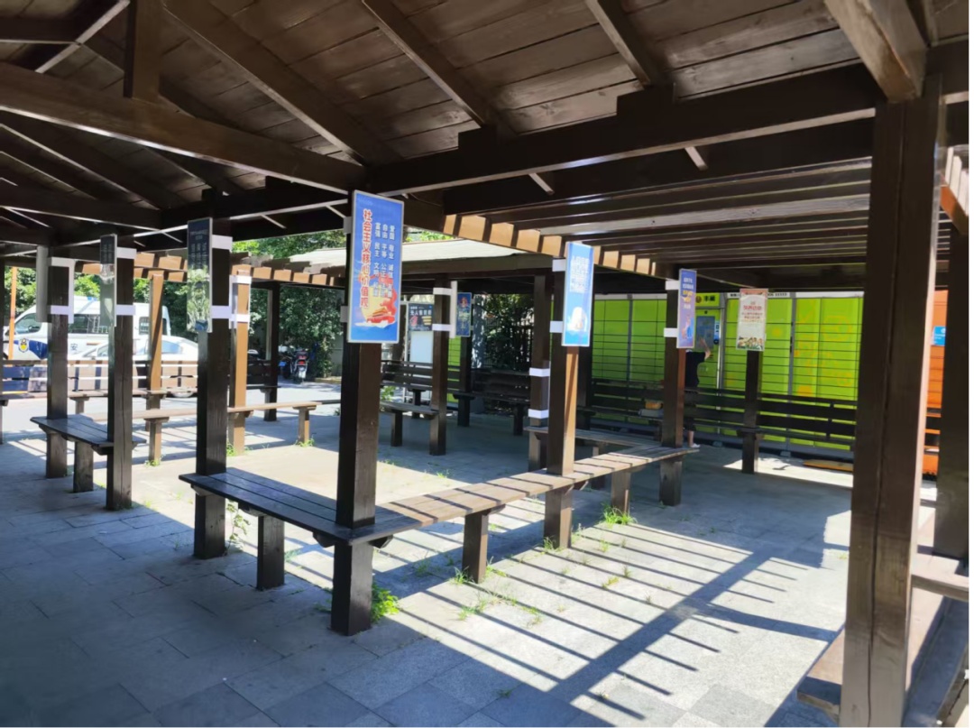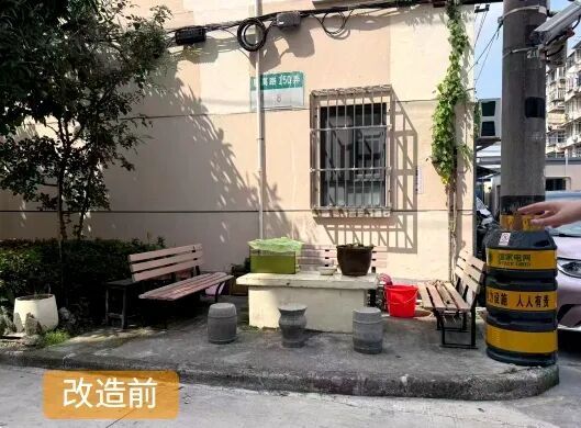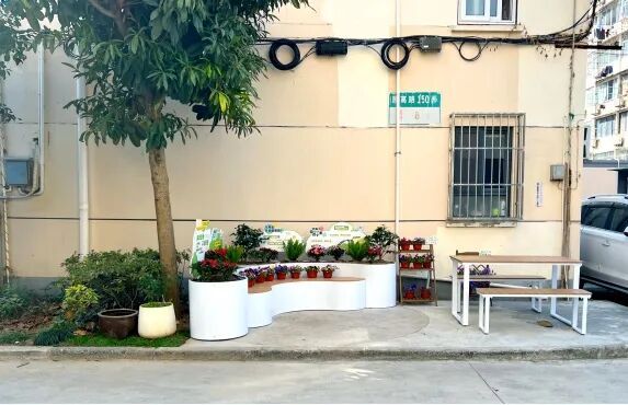 在日常走访中,居委发现小区主干道转角处设有一套简易桌椅。由于设施陈旧、功能单一,这里逐渐成了居民匆匆“路过”却鲜少“停留”的闲置角落。针对居民集中反映的“休憩设施不足、空间利用率低”等问题,社区启动了“角落唤醒”计划,决定将这块“沉睡的宝地”转变为既能休息、聊天,又能亲近自然的共享空间。